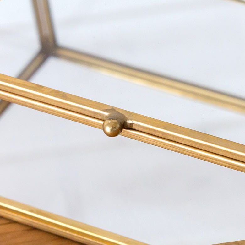 ピアス収納 イヤリング収納 クリア 透明 ゴールド プレゼント アクセサリーケース ガラスと真鍮 ガラスケース アクセサリー収納 六角形 Sサイズ [67049]【 ガラスケース ディスプレイ ジュエリーボックス ジュエリーケース ヴィンテージ 風 ビンテージ 風 アンティーク 風 おしゃれ 韓国 韓国インテリア アジアン 雑貨 】