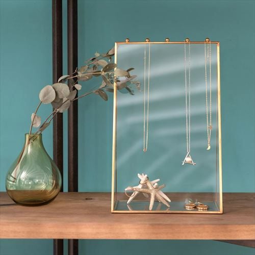 真鍮のフレームとガラスでできた、アクセサリースタンドケース。
