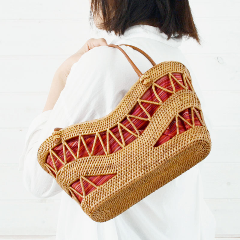 アタで編まれたかごバッグ(Gタイプ・レッド) |