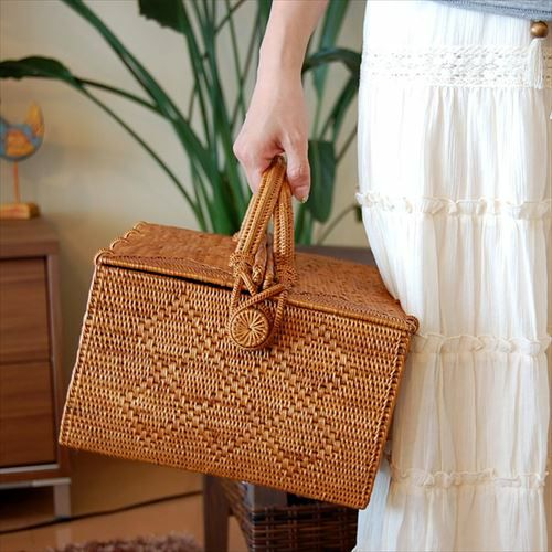 四角い形に丈夫な取っ手がついたバッグは、コスメバッグや