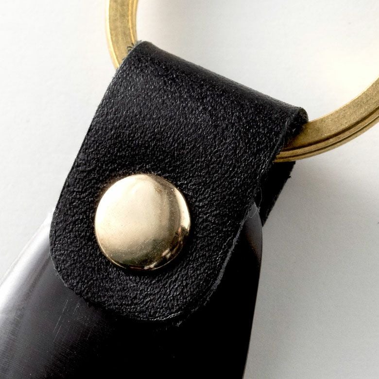 真鍮のリングはキーホルダー機能付き。さっと携帯できるスマートさが魅力的。