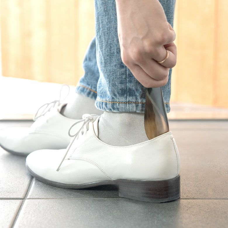しっかりと磨き上げられ心地よい手触りで、靴への足入れもスムーズ。