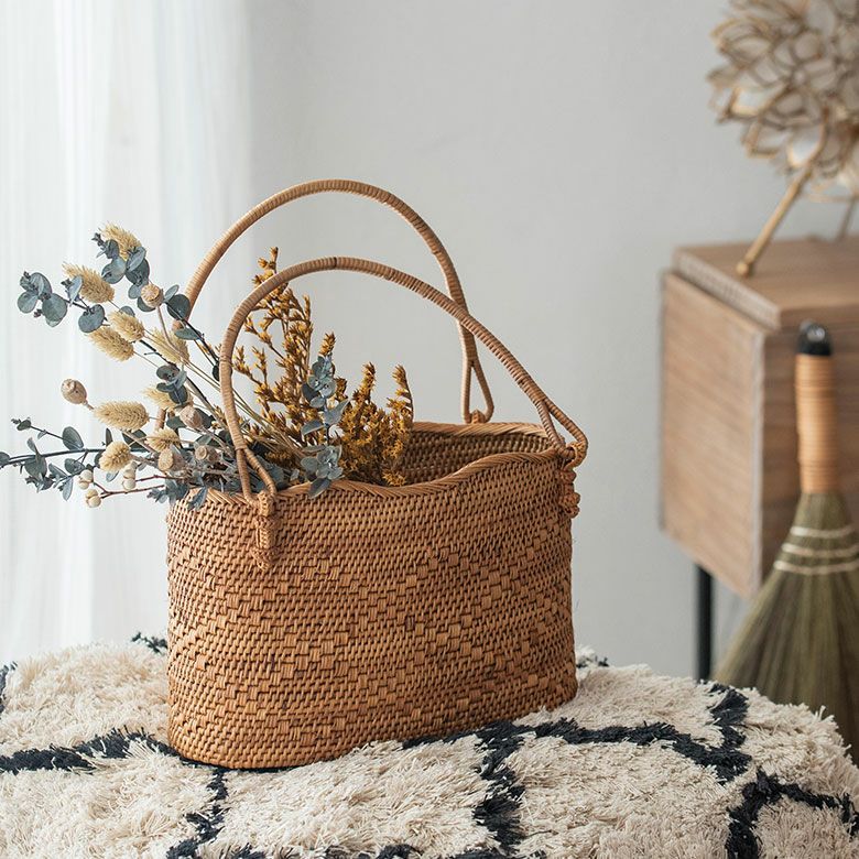 バリ島の天然素材で編まれた人気のかごバッグ。 アタで編まれた アジアン かごバッグ[内袋付き](13250)【おしゃれ トートバッグ レディース かわいい カゴバッグ 夏 ショルダー バスケット アジアン雑貨 エスニック 籠バッグ カゴ かごバック アタバック アタバッグ バリ雑貨 バリ島】