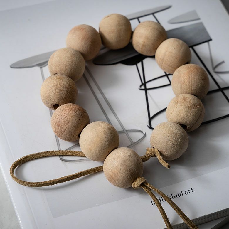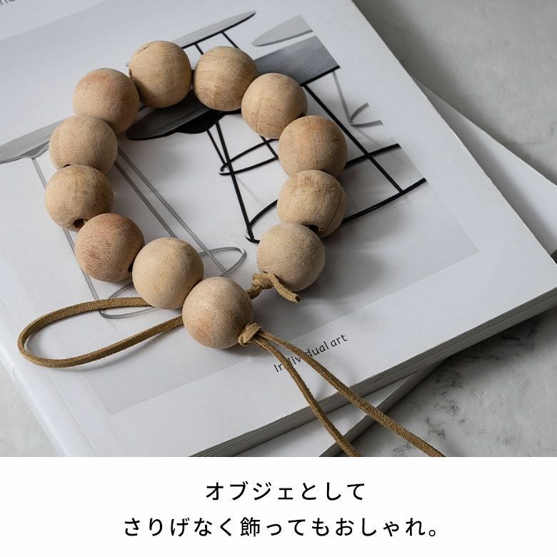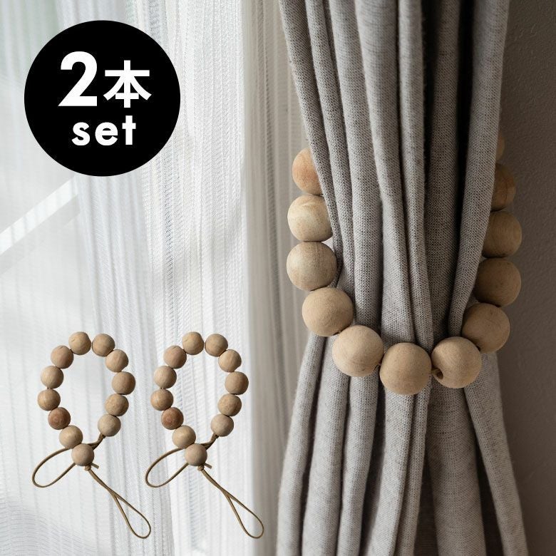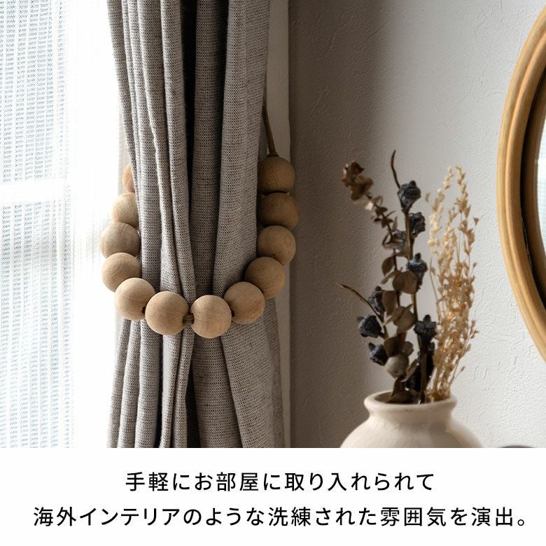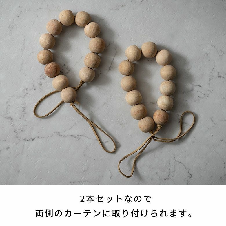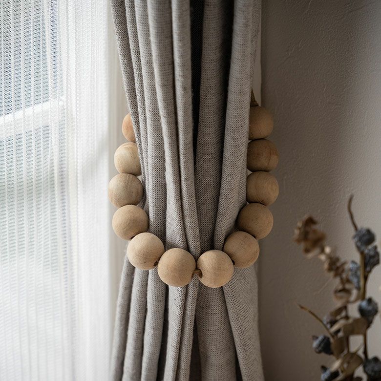 ころころとした大きめのウッドビーズがお部屋に個性を放つカーテンタッセル。