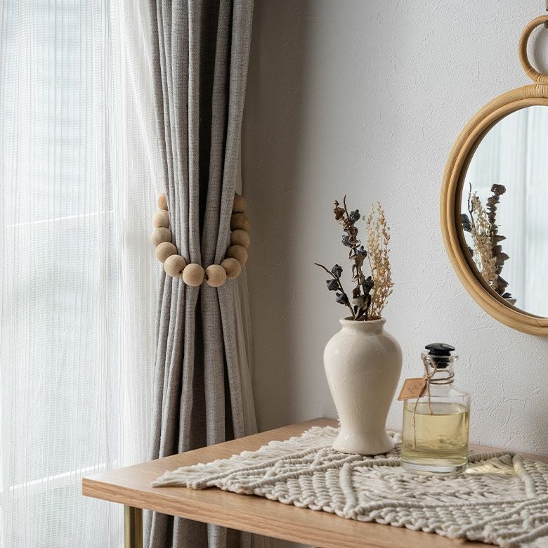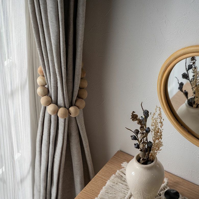 ナチュラルな色合いと質感でどんなカーテンやインテリアにも馴染み