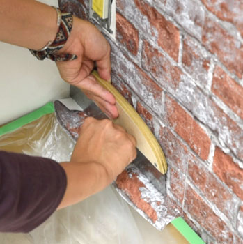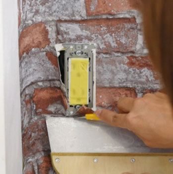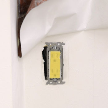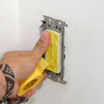 3. コンセントにはマスキングテープなどを貼って、糊が入らないようにカバーしておきます。 |