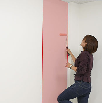 5. 細かい部分には刷毛を使います。ローラーが入らない角や端を入念に。