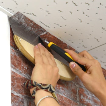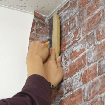 11. 地ベラ(カッターガイド)を角にしっかり押し付けて、カッターで余分をカット。天井を切るイメージです。