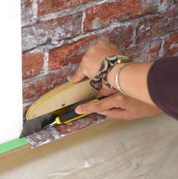 2. 糊が付かないように、床面をカバーするには「マスカー」が便利です。まずは端に沿って貼り付けます。 |