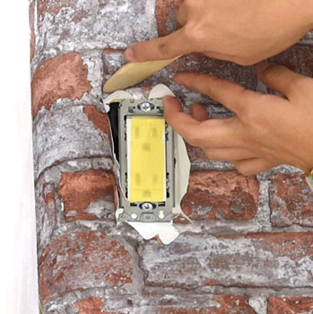 4. コンセントを傷つけないように、壁紙を浮かせながら切ってください。