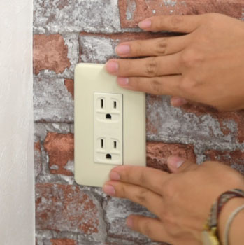 2. 壁紙の上から触り、手でコンセントの位置を探り当てます。