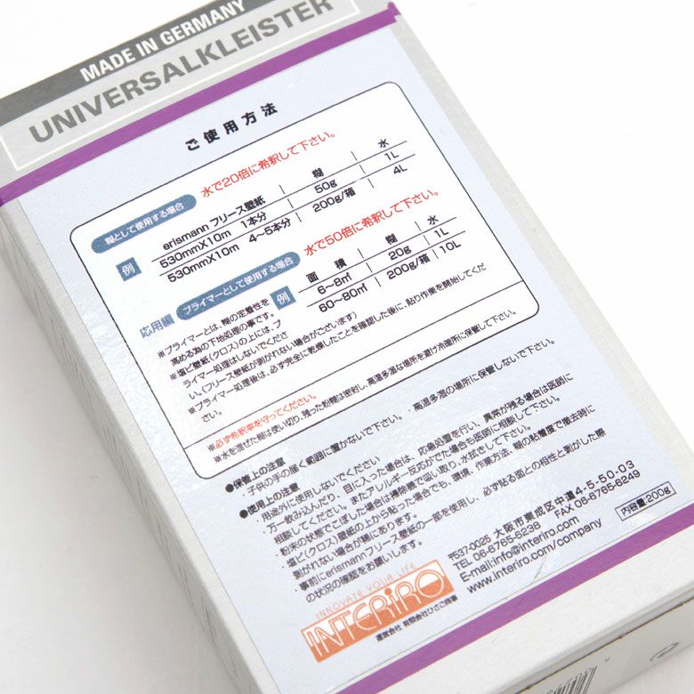 ※糊として使用する場合は、水で20倍に希釈してください。