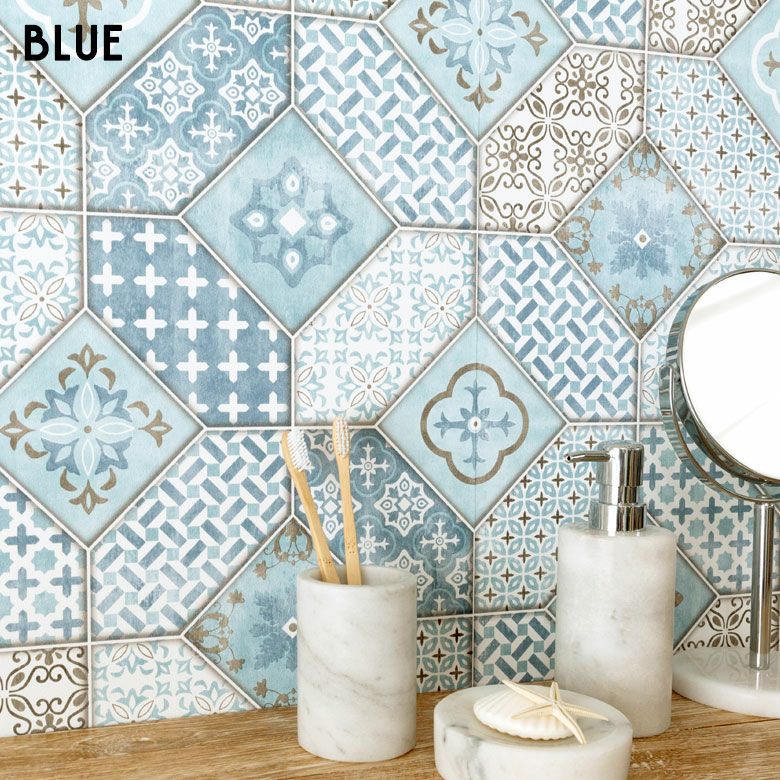 流行りのモロッカンタイルを爽やかなカラーリングで再現した、フェイク壁紙。