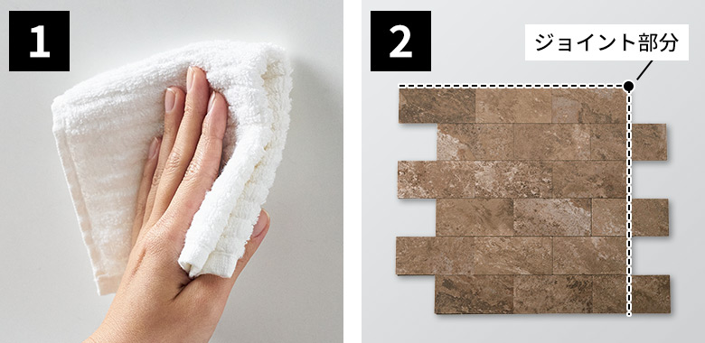 貼り付ける面を綺麗に掃除して、乾燥させます。 ※汚れやホコリが付いているとシールの付きが悪くなります。