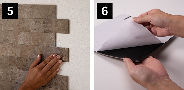さらに、両端がジグザグにカットされたパズル状の形状でタイル同士をジョイントさせながら貼るだけで継ぎ目が目立ちにくく、美しい仕上がりを実現。
