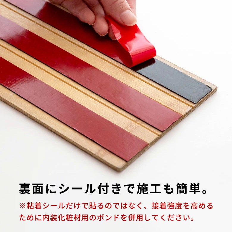 裏面に強粘着のシールが付いた、厚み4.5mmの天然木パネルで、