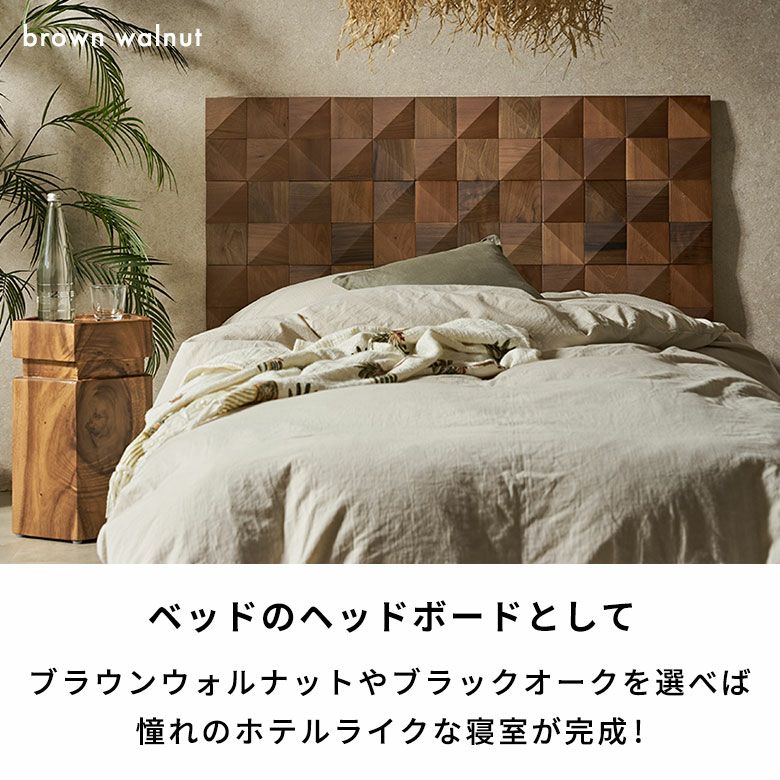 ブラウンウォルナットやオークブラックを選べば、憧れのホテルライクな寝室空間が完成。