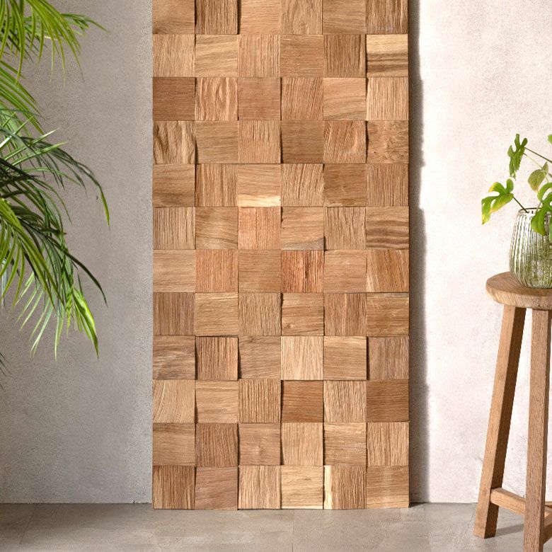 天然チークウッドのウォールパネル[パーケットデザイン]