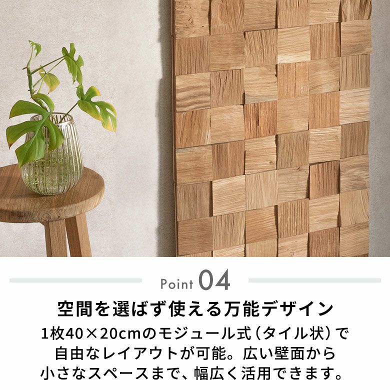 ・耐久性と堅牢さが特徴。長く愛用できるため、ウッドウォールパネルとして人気