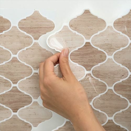 ぺたっと貼るだけ、 接着剤や目地材など、特別な材料は必要ありません。台紙をめくって貼るだけ! |