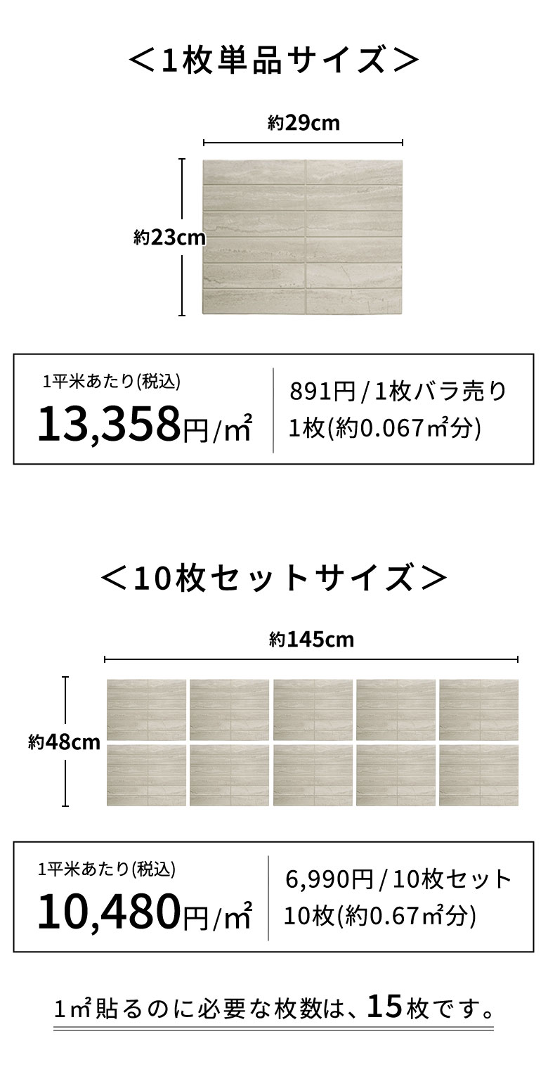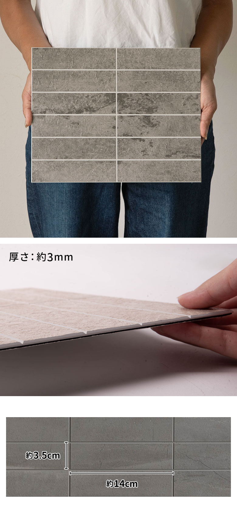 1枚あたり約300gと軽量なタイルシールは、持ち運びや施工もスムーズ。女性や初めてのDIYでも安心してお使いいただけます。