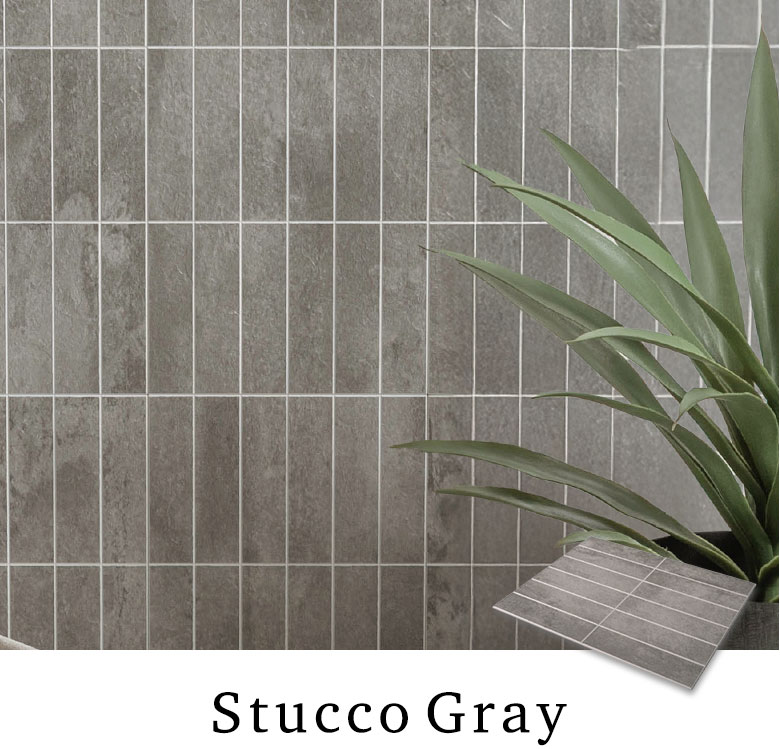 自然な風合いのスタッコ調テクスチャ。不均一な凹凸感が塗り壁風のラフな質感をリアルに再現。落ち着きのあるグレーカラーが空間に洗練された印象を与え、モダンにも