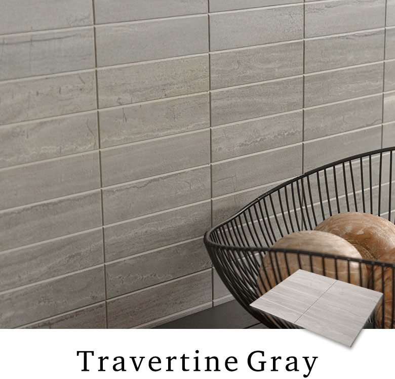 天然石トラバーチンを思わせる繊細な模様と質感が魅力。やわらかなグレーの濃淡と