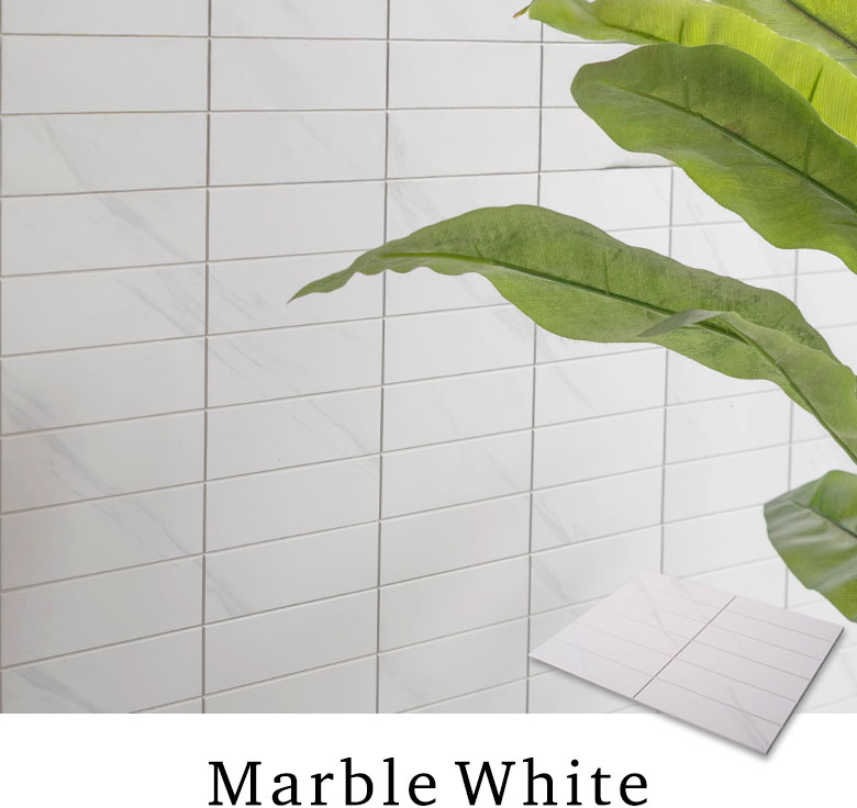 まるで本物の天然大理石を使用したかのようなリアルな質感が魅力のストーン調タイルシール立体感のある目地のラインとツヤを抑えたテクスチャー仕上げが、本格的な素材感を引き立て、空間に落ち着いた高級感をもたらします。