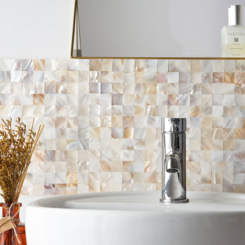 本物のシェル(貝殻)を使用した贅沢なタイルシール。