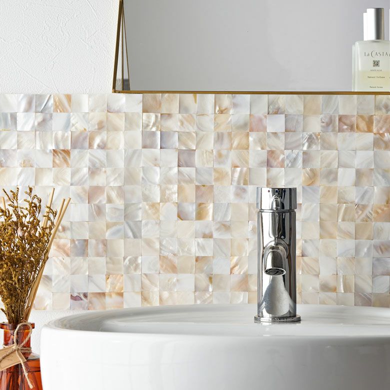 モザイクタイルシール 天然シェル【ホワイトカラー】