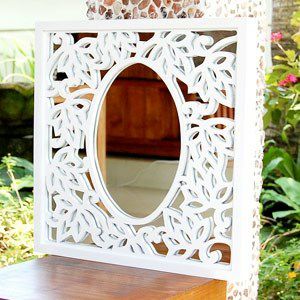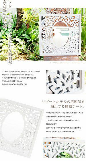 ホワイトに塗装されたカービングミラーはフレームに収まり
