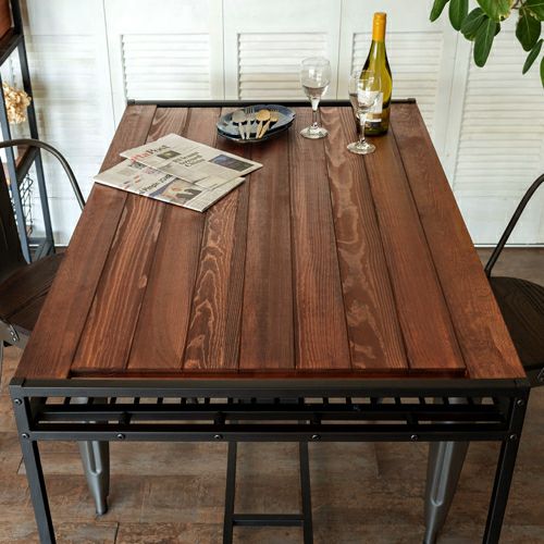 ブラックアイアンと、木目の美しいパイン無垢材を組み合わせた