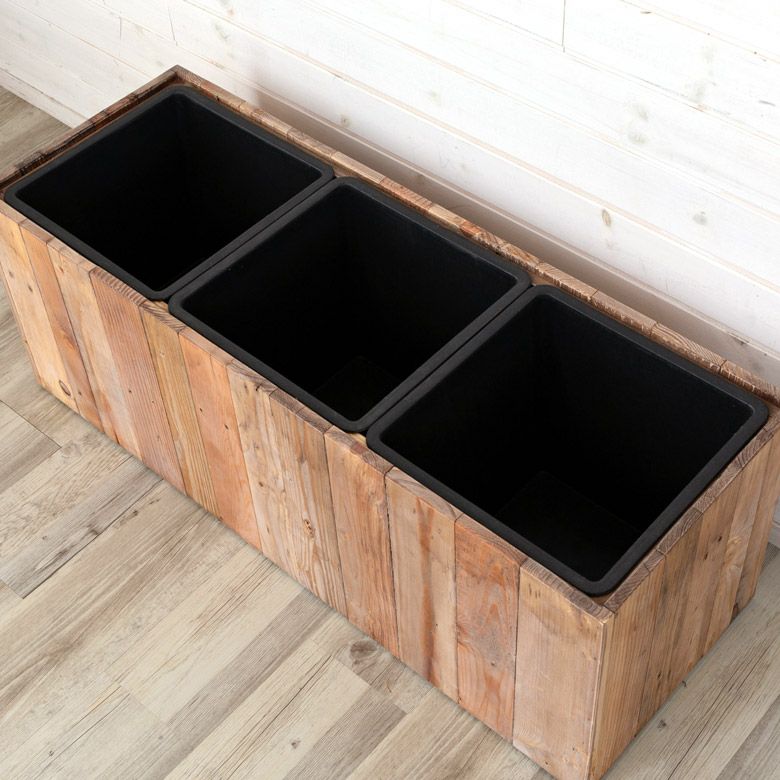 プランター プランターボックス 小型 木箱 ゴミ箱 観葉植物 DIYプランター プランターボックス 深型 木箱 ゴミ箱 観葉植物 DIY プランターカバー ウッドプランターボックス ウッドプランターカバー 長方形 3分割トールスクエア型(5号用×3)インナーポット付 底穴なし 木製 外寸 幅66.5cm 奥行24.5cm 高さ75cm [51171]【 鉢カバー プランツボックス 植木鉢カバー ウッドボックス 受け皿 おしゃれ 】