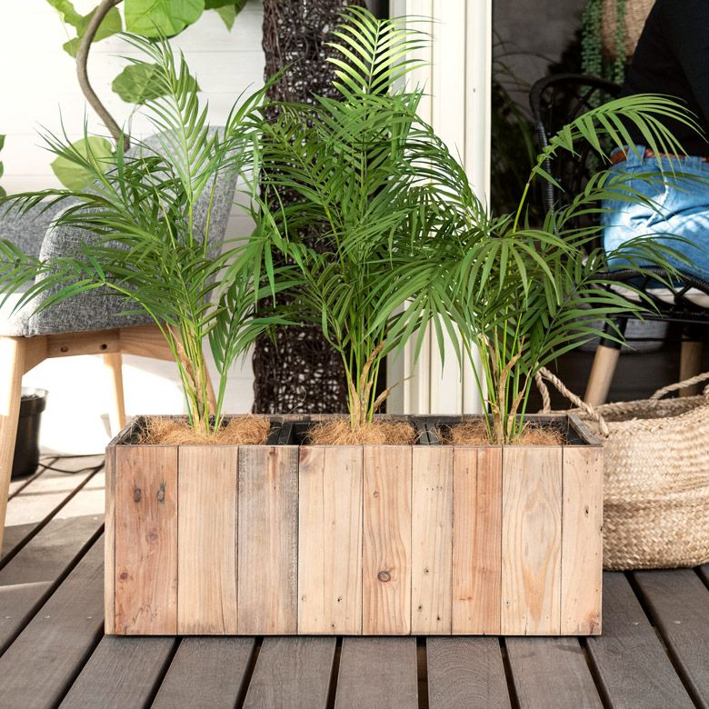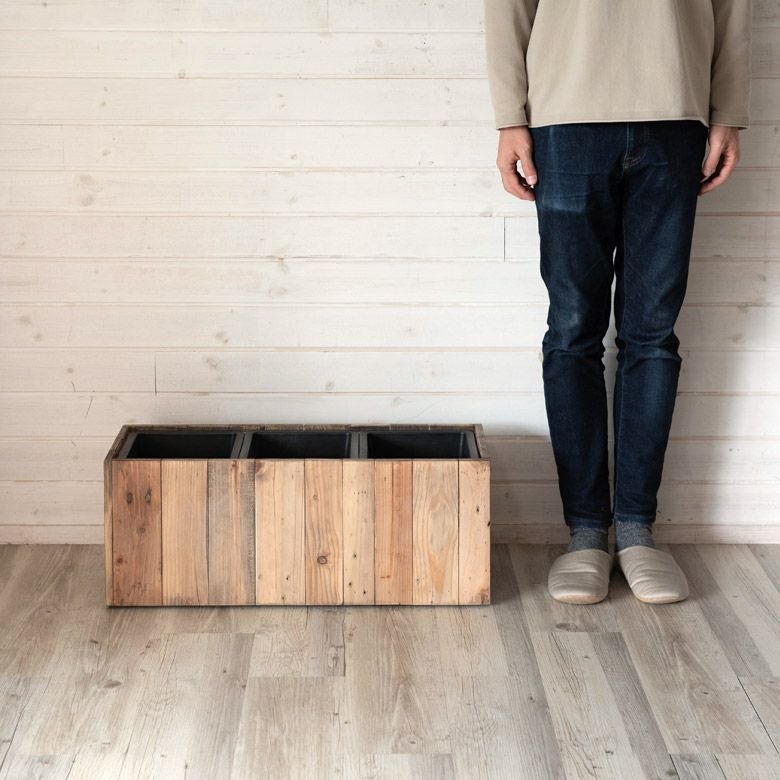 ・リサイクルウッドで作られたトリプルプランターカバーは、幅66.5cm×奥行24.5cm×高さ26cmのサイズ