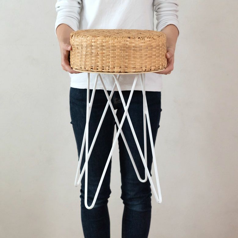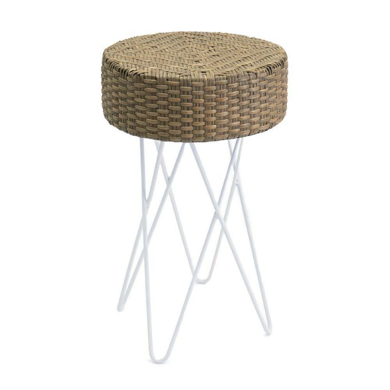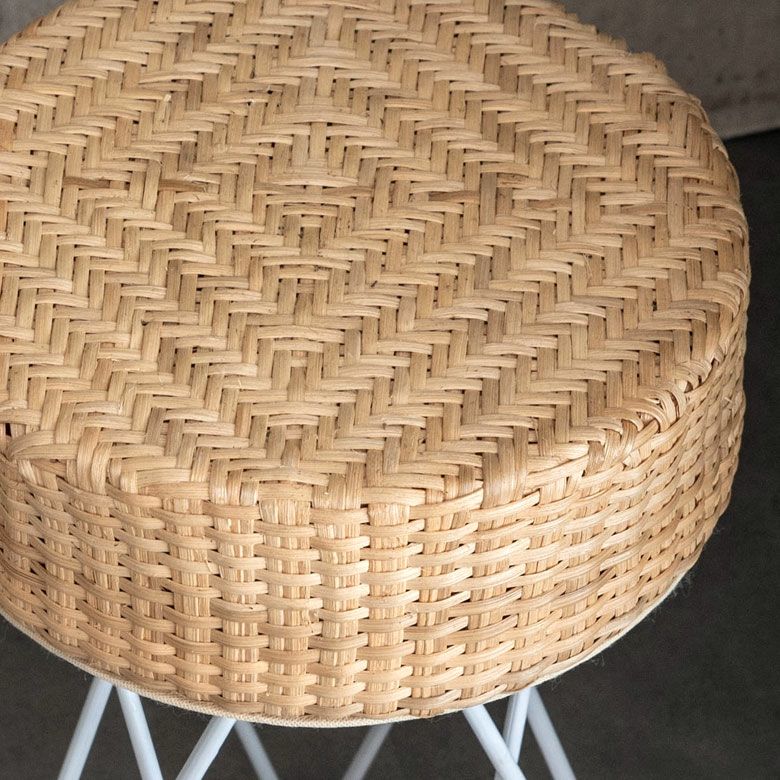 淡いカラーのラタンとホワイトのアイアンを組み合わせたスツール。