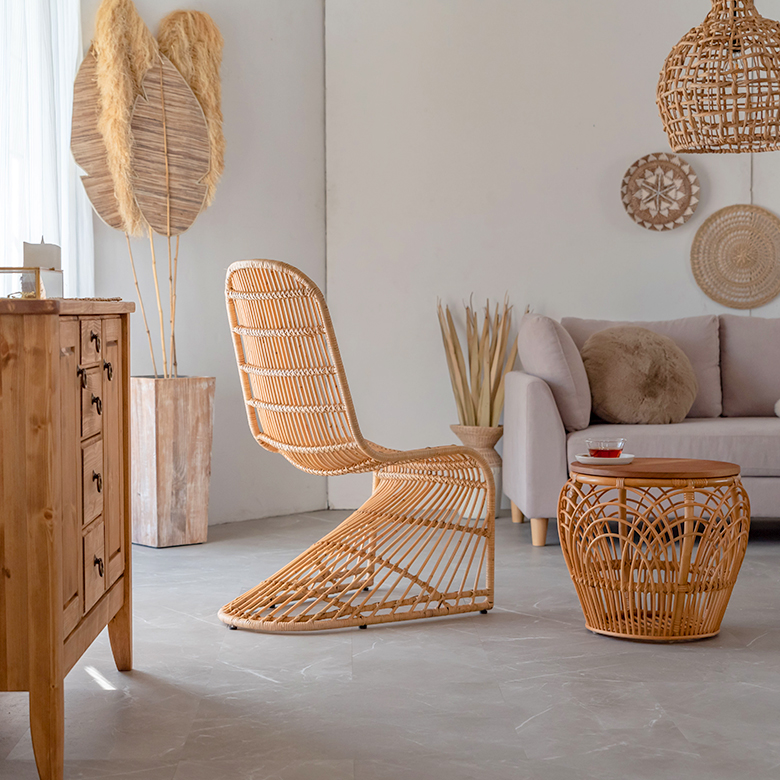 この曲線美は、自由に曲げられる特性を持つラタンならでは。