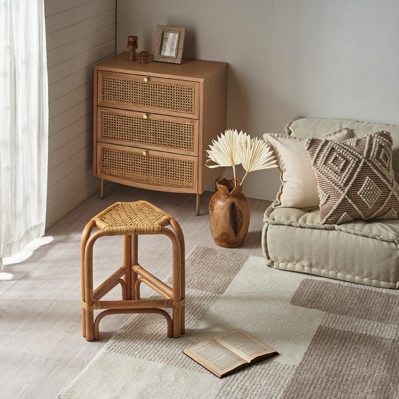天然素材ならではの風合いを活かした、ラタンスツール。