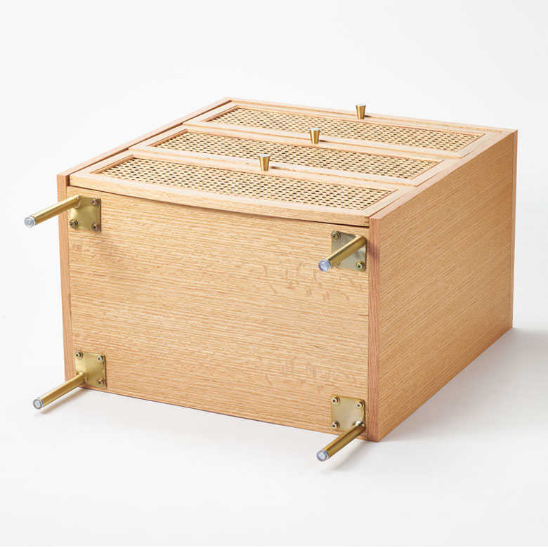 天然オーク無垢材と、カゴメ編みの天然素材ラタンを贅沢に使い