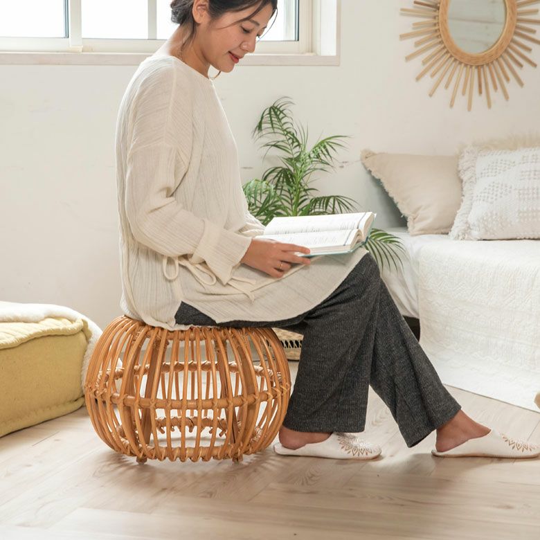 ダイニング リビング いす カフェチェア 寝室 玄関 ディスプレイ 回転 スツール ラタンスツール ラタン 籐 椅子 イス 座面高 35.5cm オットマン デザイン ナチュラル 家具 インテリア 丸椅子 チェア チェアー ラタンチェアー 1人掛け 1P 1人用 コンパクト 腰掛け リゾート 店舗 カフェ おしゃれ 北欧 モダン アジアン [91586]