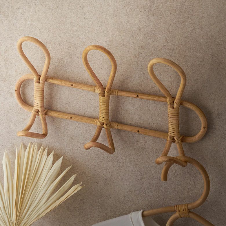 ラタンフック 壁フック 壁掛け ダブルフック コートハンガー 壁面収納 ウォールシェルフ ハンガーフック ヴィンテージ風 ビンテージ風 フック付き シンプル ディスプレイ オブジェ フック ラタン 籐 天然素材 ウォールハンガー 3連 約 W 40cm D 6.5cm H 20cm ナチュラル ベージュ 壁掛けフック 壁面 フック 壁 ウォールフック ハンガーラック ウォールラック ウォールシェルフハンガー インテリア 軽量 おしゃれ 北欧 リゾート 雑貨 アジアン [14032]