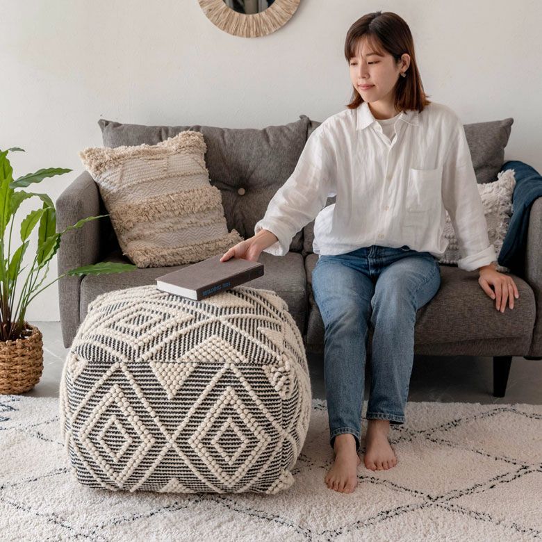 まずクッションカバーを手軽に取り入れてから、プフクッションの導入を検討いただくもおすすめ。
