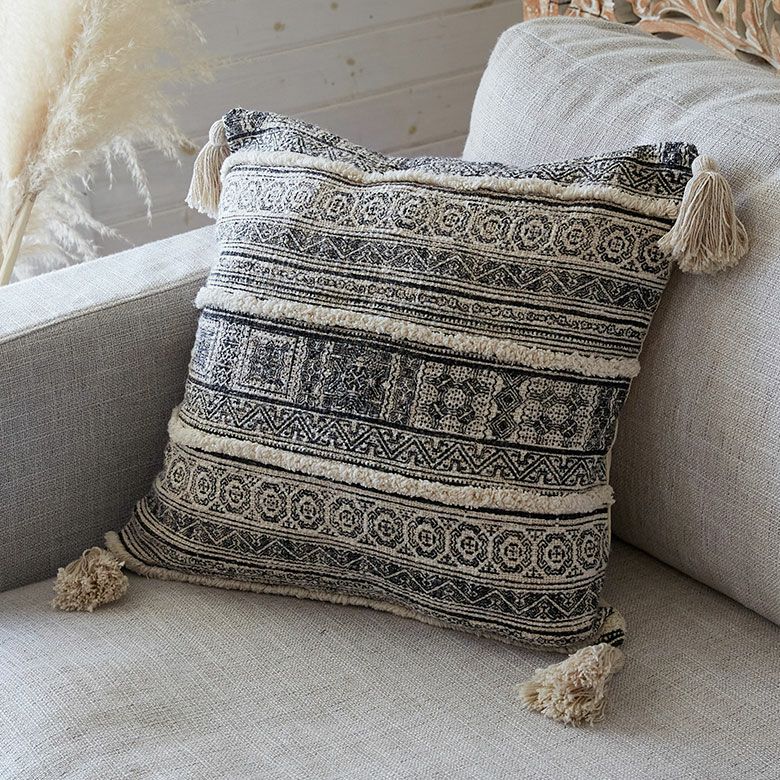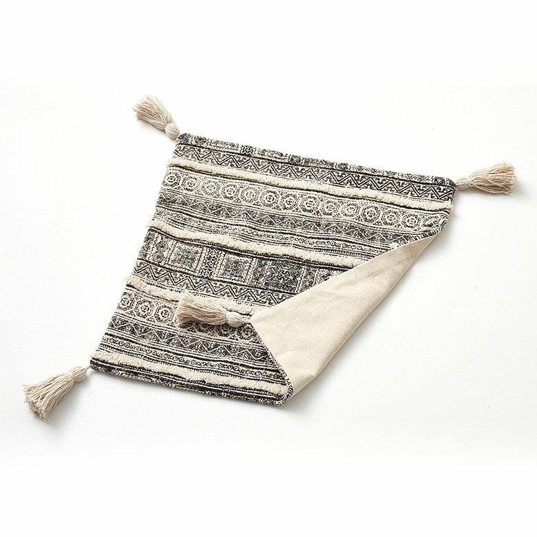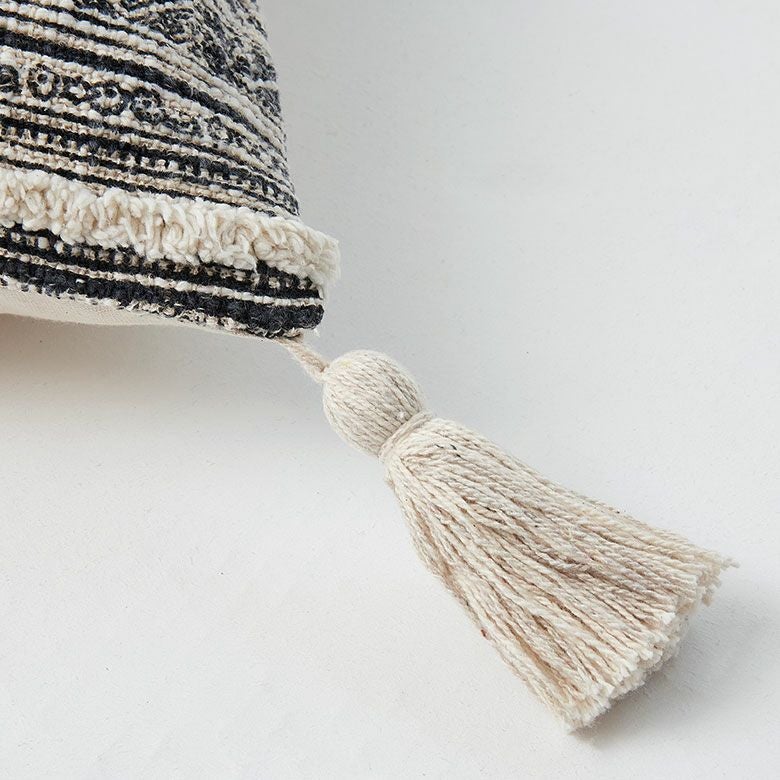 表面にあしらわれたフリンジとタッセルがアクセントになっており