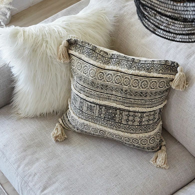 フリンジ付きクッションカバー