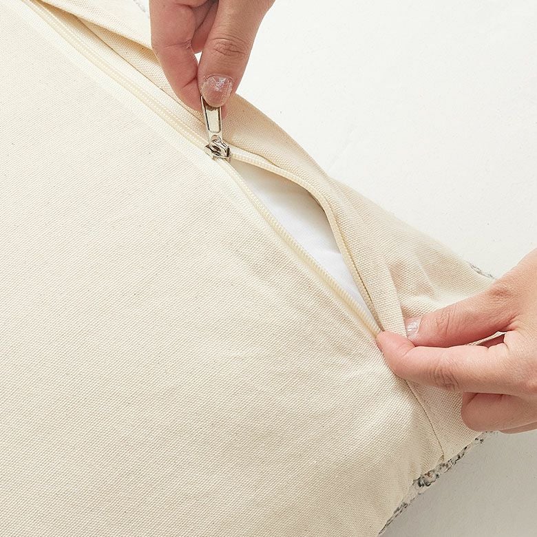 生地にはリサイクル素材を使用したサスティナブルなクッションカバーです。