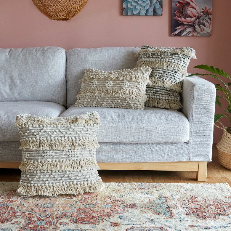 同シリーズのクッションカバーと組み合わせるのもおすすめ。