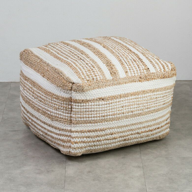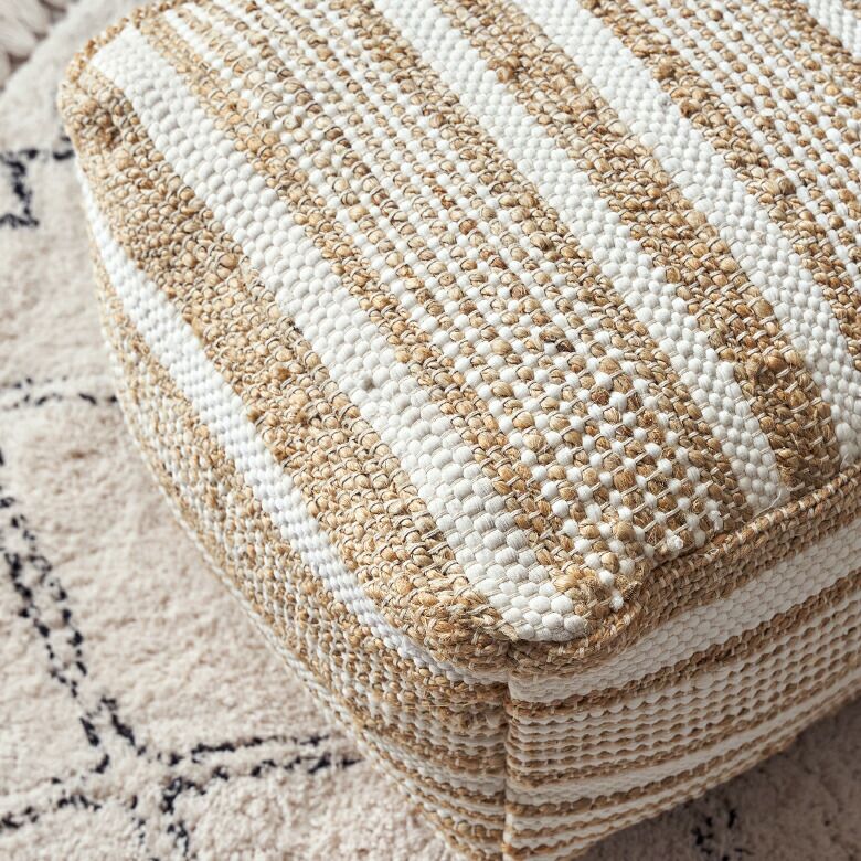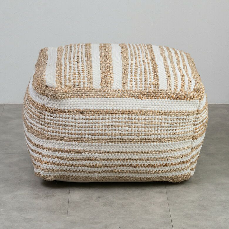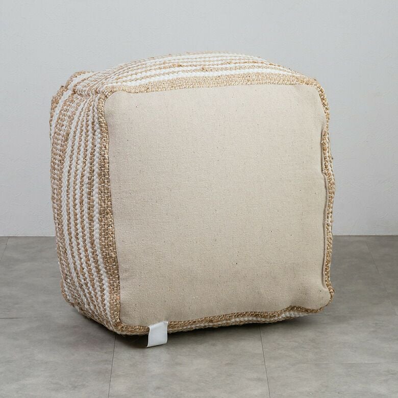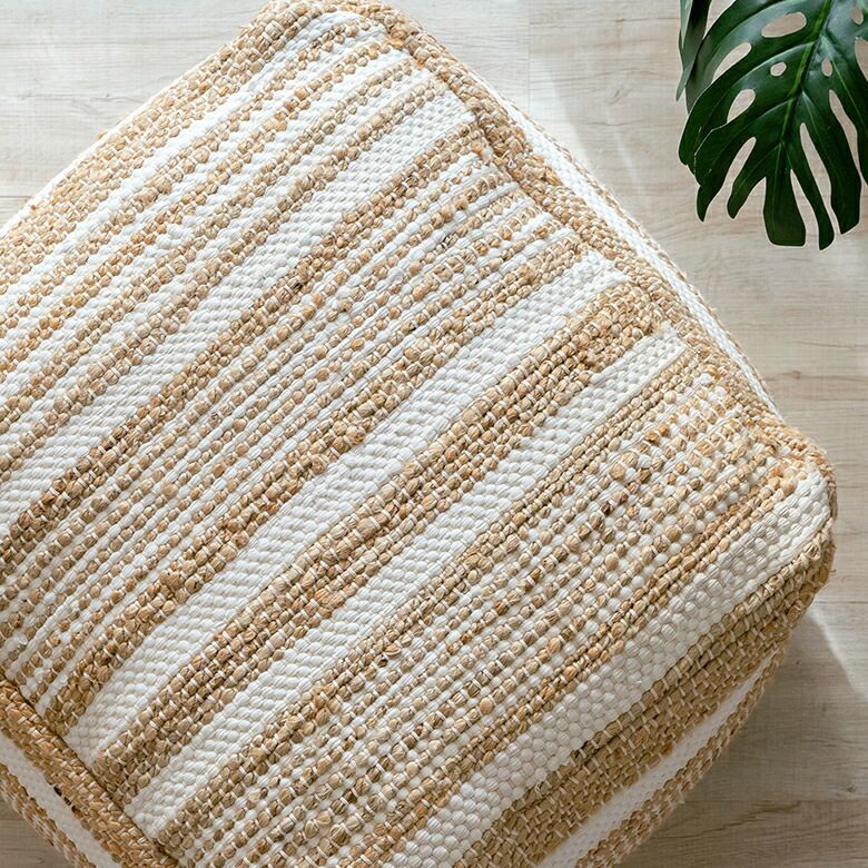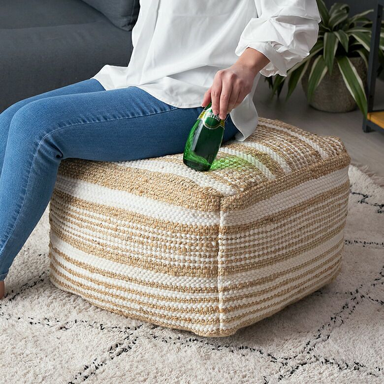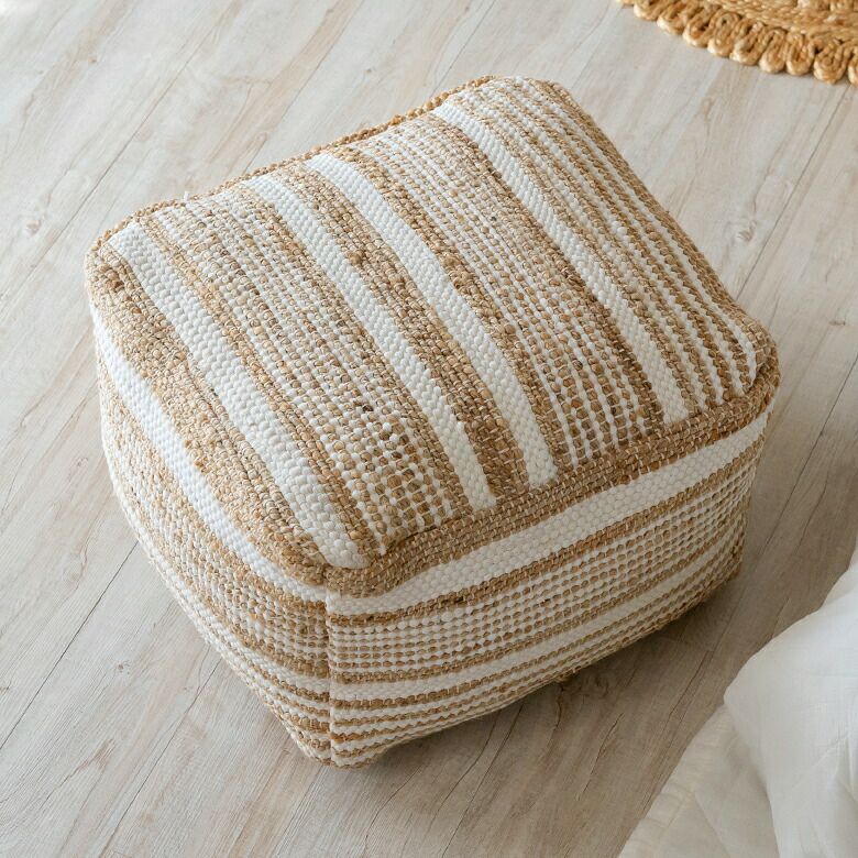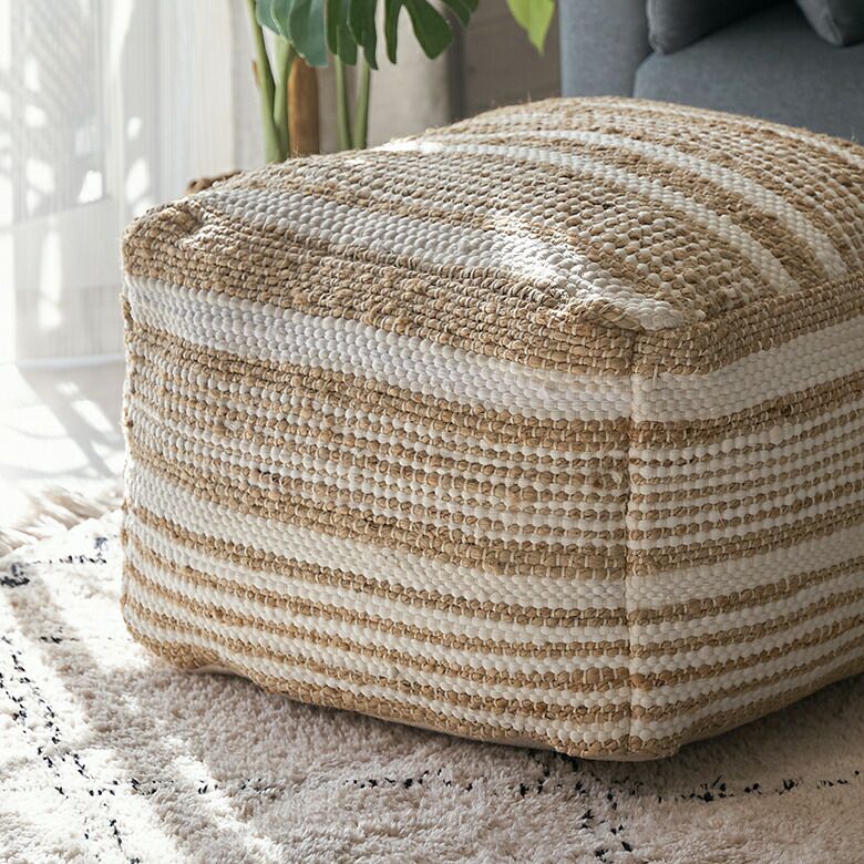 ジュートとコットンの、異素材を組み合わせて編み込んだプフクッション。