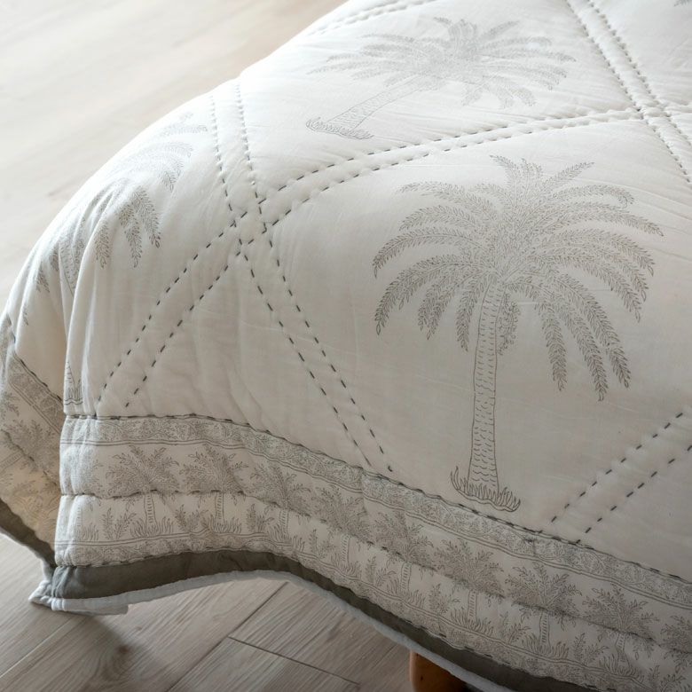 春 夏 秋 冬 夏用 パームツリー モロッコ モロッカン カンタ刺繍 マルチカバー マルチ キルト カバー 大判 ブランケット 長方形 200×250cm ソファカバー ベッドカバー [34463]【 ヤシの木 ベッド スプレッド スロー インド 綿 コットン 100% 刺繍 ベビー 子供 洗える 洗濯可 おしゃれ 北欧 ビーチ リゾート アジアン 雑貨 】