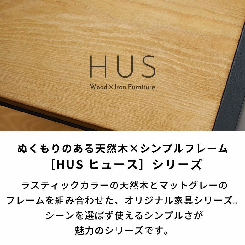 この天然木とマットグレーアイアンの組み合わせが、[ HUS ヒュース ] シリーズの特長。安価なスチールラックには出せない“上質な空気感”を演出してくれます。