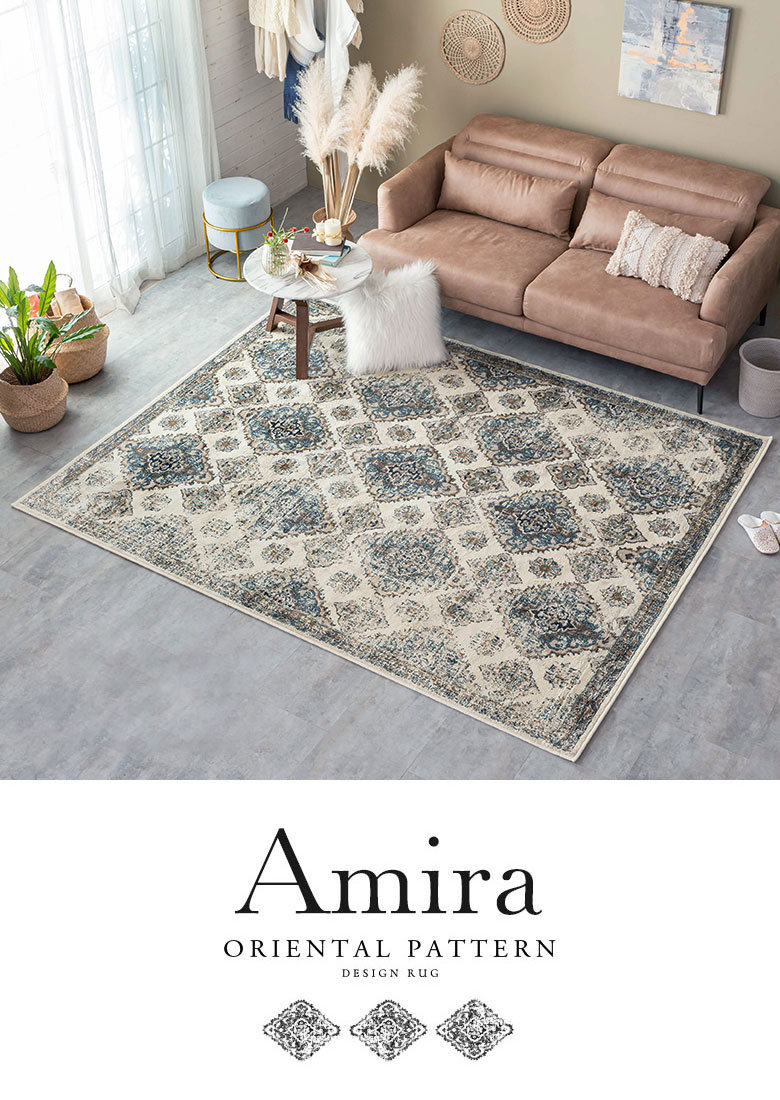 当店大人気のオリエンタル柄ラグ「Amira アミーラ」シリーズ。130×190cmと200×250cmの2サイズに、ホワイト×レッド、ベージュ、オレンジの3色が新登場!お部屋に温かみを与える、待望の暖色系カラーです。シックな印象のホワイト×ブルー、ブルーと合わせて、充実の全5色展開になりました。