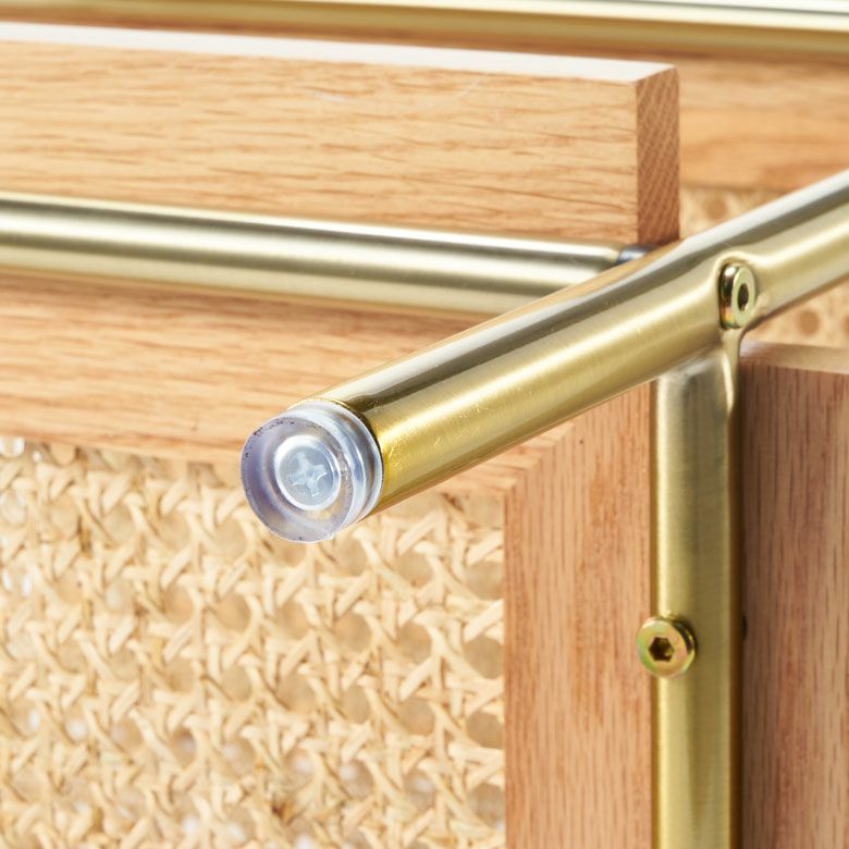 たっぷり贅沢に使われた、透け感のあるカゴメ編みラタンの3つの棚板は
